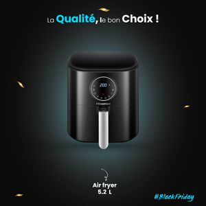 HISENSE AIR FRYER H06AFGY1S1 5.2L With its 5.2-liter capacity, it's perfect for families or group meals. Featuring 1500 watts of power and 360° hot air circulation technology, it guarantees even cooking and crispy food, with little or no oil. Its large, intuitive touchscreen allows quick access to 7 automatic programs, making it easy to prepare a variety of dishes. The temperature is adjustable between 80°C and 200°C to suit different types of recipes. It also features a shake reminder function, ensuring even cooking. Its elegant design incorporates a removable basket with a non-stick coating, dishwasher-safe for easy cleaning. Compact and practical, it measures 365 mm (W) x 275 mm (D) x 294 mm (H) and weighs 6 kg, fitting perfectly into any kitchen. The Hisense H06AFGY1S1 is the perfect ally for adopting a healthier diet without compromising the taste and...