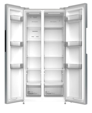 The Hisense RC-55WS4SA refrigerator is a Side by Side two-door model, offering a total capacity of 428 liters , ideal for medium-sized families. Its Inverter technology ensures optimal energy efficiency and quiet operation, helping to reduce electricity consumption. The No Frost cooling system prevents frost formation, eliminating the need for manual defrosting and ensuring optimal food preservation. Featuring a stylish stainless steel design, it brings a modern touch to your kitchen while being easy to maintain. The LED interior lighting provides clear visibility of all compartments, facilitating access to food. The tempered glass shelves are designed to support heavy loads and are adjustable for personalized organization. The spacious door balconies allow for the storage of large bottles and other bulky items. In summary, the Hisense RC - 55WS4SA combines modern design, advanced technologies and practicality to meet the daily food preservation needs and those of the great Magal of Touba.