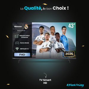 The Hisense LED 43A5200FS is a 43-inch Full HD television , ideal for an exceptional home entertainment experience. Thanks to its LED screen , it offers sharp and detailed images with a resolution of 1920x1080 pixels . The 60 Hz refresh rate and 120 Hz smooth motion rate ensure smooth images, perfect for sports, action movies and video games. The 5000 contrast and 8-bit color depth allow for vivid and realistic colors. The television is equipped with two HDMI ports, two USB ports and an Ethernet port , facilitating connections with other devices. Its elegant and compact design easily fits into any living space. In addition, the sound is enhanced by Dolby Digital technology. Plus, providing an immersive audio experience . Easy to use and maintain, this television is a practical and aesthetic solution for your home.