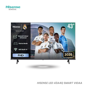 HISENSE TV 43A4K SMART VIDAA The Hisense LED 43A4K Smart VIDAA is a 43-inch television that offers an exceptional visual and sound experience. Thanks to its Full HD 1920x1080 pixel LED screen, it delivers sharp and detailed images. The 60 Hz refresh rate and 120 Hz smooth motion rate ensure smooth images, perfect for sports, action movies and video games. The VIDAA operating system allows quick and intuitive access to thousands of applications and streaming services, such as Netflix, Disney+, YouTube and Prime Video. DTS Virtual:X technology provides an immersive audio experience, while Game Mode and Sports Mode improve performance for video game and sports fans. In addition, this television is equipped with two HDMI ports, two USB ports and an Ethernet port, facilitating connections with other devices. Its elegant and compact design fits easily into any living space. Easy...