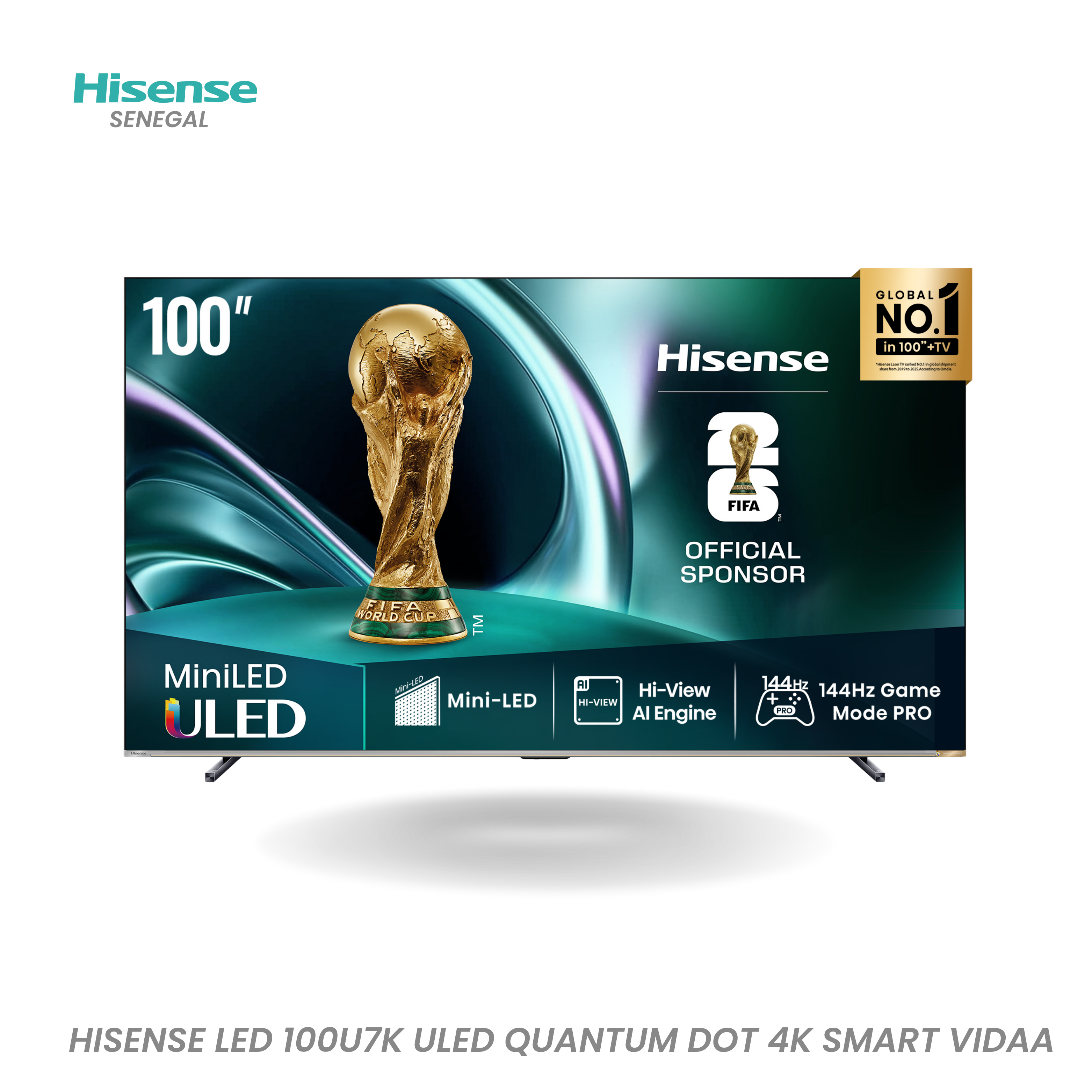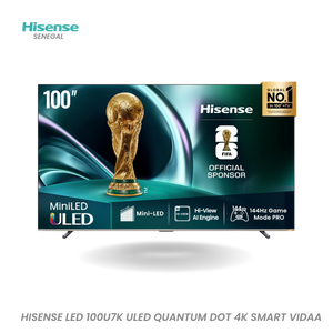 Hisense 100U7K Mini-Led Uled La Hisense LED 100U7K ULED Quantum Dot 4K est une télévision Mini-LED connectée de pointe qui offre une expérience visuelle exceptionnelle. Son immense écran de 100 pouces et sa résolution 4K Ultra HD (3840x2160 pixels) garantissent des images ultra précises et lumineuses. Combinant la technologie Quantum Dot avec les Mini-LED, elle offre un contraste saisissant et une précision des couleurs incomparable. Grâce à son système VIDAA Smart OS, vous accédez à vos plateformes préférées comme Netflix, YouTube ou Prime Video, en toute simplicité. Côté audio, elle est équipée de Dolby Atmos [w] pour un son riche et immersif. Pensée pour les gamers, elle embarque la technologie AMD FreeSync, un taux de rafraîchissement jusqu’à 144Hz ainsi que le mode ALLM (Auto Low Latency Mode) pour un jeu fluide sans latence. Cette télévision haut de gamme est le...