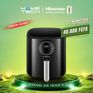 Hisense Air Fryer 5.2L Grâce à sa capacité de 5,2 litres, elle est parfaite pour les familles ou les repas en groupe. Dotée d'une puissance de 1500 watts et d'une technologie de circulation d'air chaud à 360°, elle garantit une cuisson uniforme et des aliments croustillants, avec peu ou pas d'huile — une alternative idéale pour réduire sa consommation d'énergie. Son grand écran tactile intuitif permet un accès rapide à 7 programmes automatiques, facilitant la préparation d'une variété de plats. La température est réglable entre 80 °C et 200 °C pour s'adapter à différents types de recettes. Elle dispose également d'une fonction de rappel pour secouer les aliments, assurant une cuisson homogène. Son design élégant intègre un panier amovible avec revêtement antiadhésif, compatible avec le lave-vaisselle pour un nettoyage facile. Compacte et pratique, elle mesure 365 mm (L) x 275...