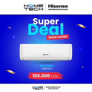 HISENSE SPLIT AS-12CR4SVDDC R410A Le climatiseur split Hisense AS-12CR4SVDDC est un appareil performant conçu pour offrir un confort thermique optimal dans les espaces résidentiels ou professionnels. Utilisant le réfrigérant écologique R410A, ce modèle contribue à la protection de l’environnement tout en assurant une grande efficacité énergétique. Avec une puissance de refroidissement de 12 000 BTU, il est capable de rafraîchir des pièces de taille moyenne avec rapidité et efficacité. Ce climatiseur est doté de plusieurs modes de fonctionnement, dont le refroidissement, le chauffage, la déshumidification et la ventilation, offrant ainsi une solution polyvalente pour toutes les saisons. Son système de filtration avancé améliore la qualité de l'air en capturant les particules et les allergènes, assurant un environnement plus sain. Le design moderne et discret du AS-12CR4SVDDC lui permet de s’intégrer facilement dans n’importe quel intérieur. FICHE TECHNIQUE Capacité 12 000...