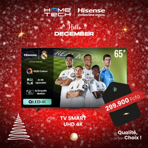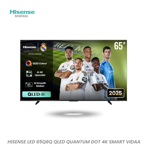 Le système audio intègre Dolby Atmos, offrant un son immersif et riche, renforcé par une puissance sonore de 20W. Grâce à la plateforme Smart TV Vidaa U, l’accès aux applications comme YouTube, Netflix ou Prime Video est rapide et intuitif. Le téléviseur est également compatible avec Alexa, Apple AirPlay et HomeKit, pour un contrôle vocal et connecté simplifié. Avec ses multiples connectiques (HDMI eARC, USB, Bluetooth, Wi-Fi), il s’adapte à tous vos appareils et usages. Son design sans bordures avec fixation murale VESA 400x300 mm en fait un objet élégant et discret dans tout intérieur. Le Hisense 65Q6Q est la Smart TV parfaite pour ceux qui recherchent un grand écran 4K QLED puissant, connecté et immersif. Découvrez toute la gamme de téléviseur disponible chez Hometech.