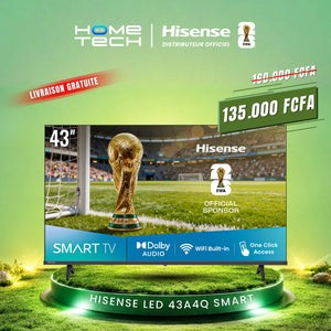La Hisense LED 43A4Q Smart VIDAA est une télévision de 43 pouces qui offre une expérience visuelle et sonore remarquable. Grâce à son écran LED Full HD de 1920x1080 pixels, elle procure des images nettes et détaillées. Le taux de rafraîchissement de 60 Hz combiné au Motion Rate 120 Hz assure une grande fluidité d’image, idéale pour les films d'action, les sports ou les jeux vidéo.